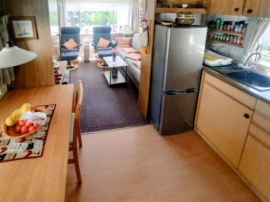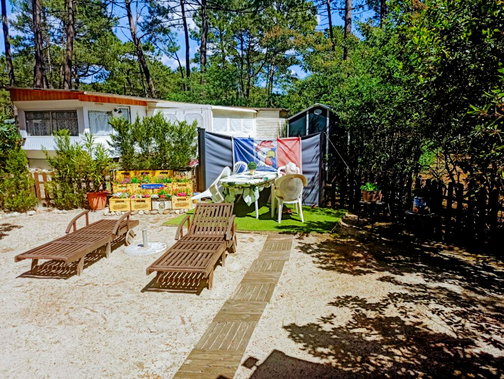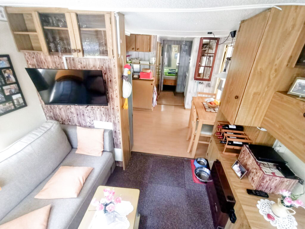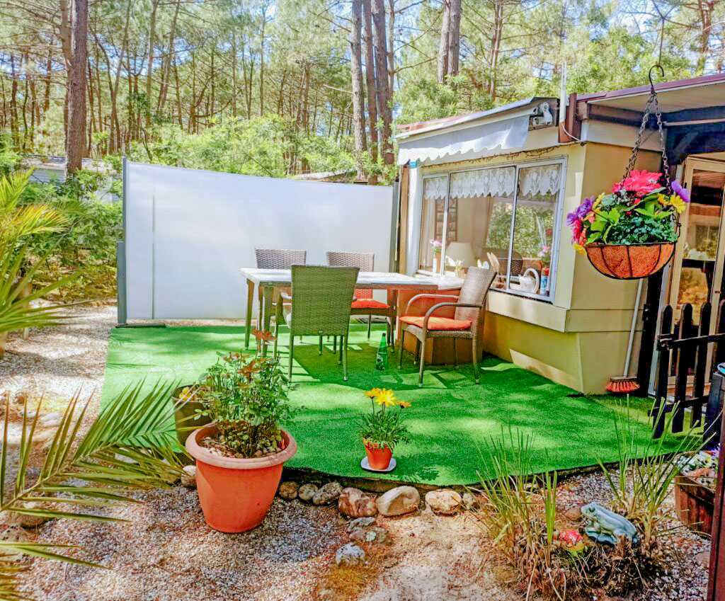 Mobil-home installé en 1980, composé d’un salon avec cuisine ouverte, 1 salle d’eau avec WC et 1 chambre. Vendu meublé et équipé.
